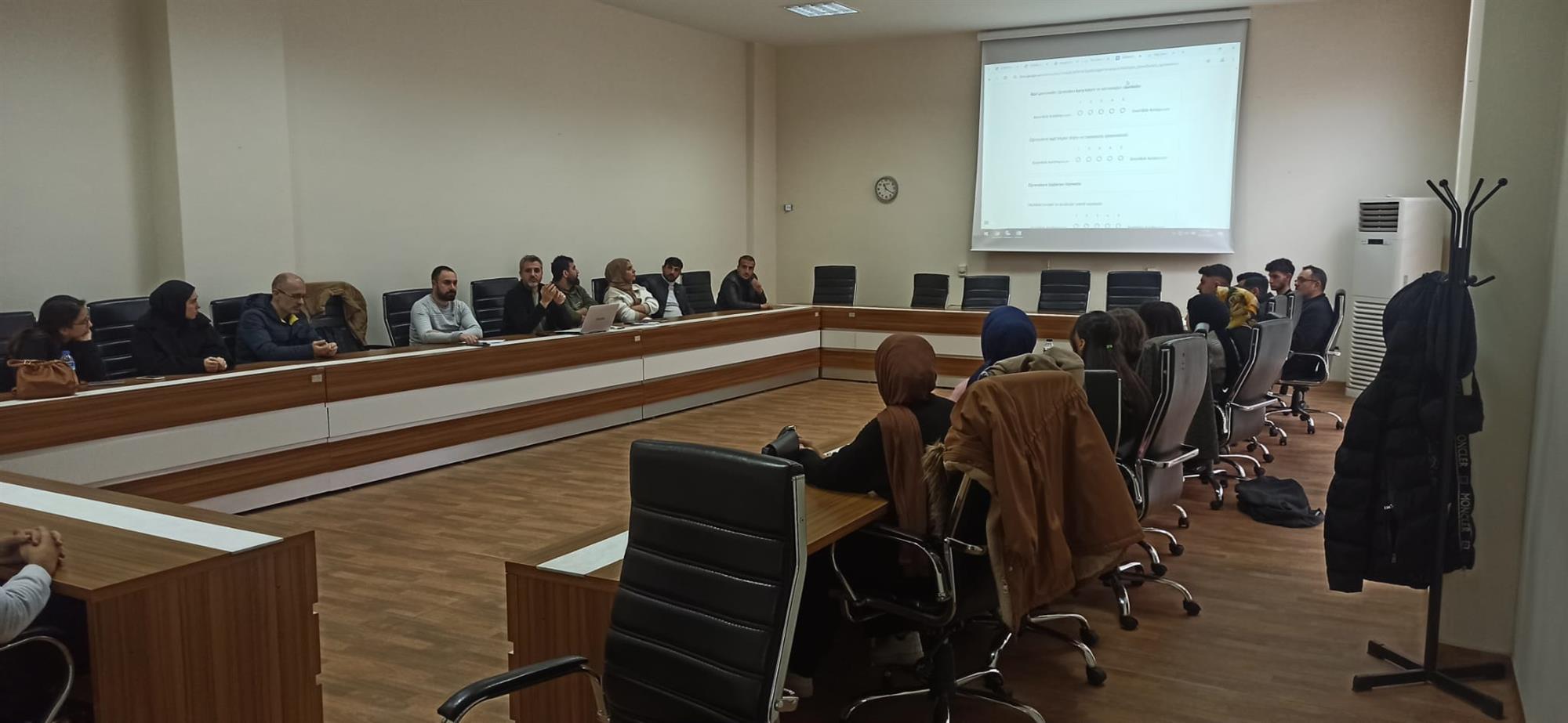 2024 - 2025 Yılı Güz Dönem Sonu Toplantısı Meslek Yüksekokulu Müdürümüz Doç. Dr. Mithat ELÇİÇEK Başkanlığında, Müdür Yardımcıları, Bölüm Öğretim Elemanları ve Bölüm Öğrenci Temsilcileri ile Mühendislik Fakültesi A Blok Toplantı Salonunda Gerçekleştirildi.