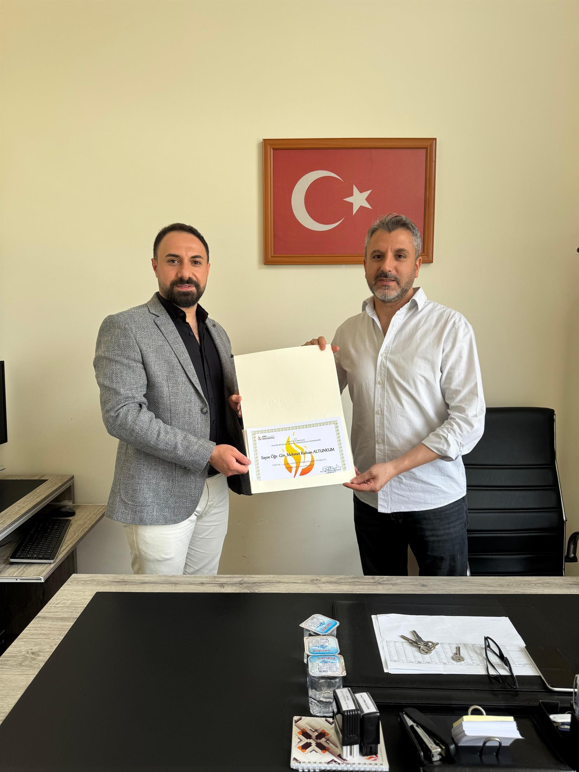 TÜBİTAK 4007 Bilim Şenlikleri Destekleme Programı kapsamında Teknik Bilimler Meslek Yüksekokulu Bilgisayar Teknolojileri Bölümü Öğretim Elemanları tarafından 9 Mayıs Cuma Günü Siirt İl Milli Eğitim Müdürlüğü’nde yapılan etkinliğe, “Atölye Lideri” olarak katılım sağlanmıştır. Etkinlik sonrasında Akademisyenlerimiz, Meslek Yüksekokulu Müdürümüz Doç. Dr. Mithat ELÇİÇEK tarafından ağırlandı ve hocalarımıza teşekkür belgeleri verildi. Projeleri desteklenmeye uygun görülen Bölüm Başkanı Öğr.Gör. Mehmet Rıdvan ALTUNKUM, Öğr.Gör. Hasan EROĞLU ve Öğr.Gör. Yunus ALP hocamızı tebrik eder, başarılarının devamını dileriz.